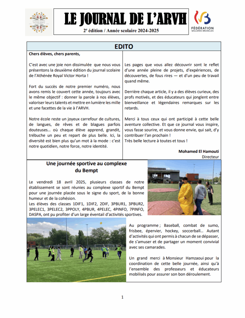 L’Athénée Royal Victor Horta est un établissement multiculturel à dimension humaine ; notre enseignement tient compte des difficultés rencontrées par chaque élève et est adapté aux besoins réels de chacun. Notre projet pédagogique a pour objectif l’épanouissement personnel des étudiants, en leur apprenant à se poser des questions, à rester curieux et ouverts d’esprit, en les poussant à apprendre de leurs erreurs et à mettre en perspective ce qu’ils connaissent déjà avec ce qu’ils ignorent.